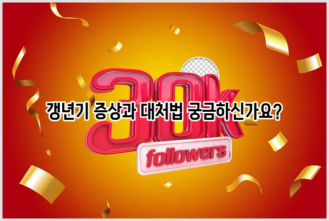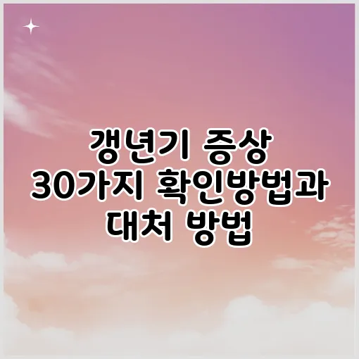 갱년기는 많은 여성들이 경험하는 자연스러운 생리현상으로, 신체와 정서에 다양한 변화를 가져올 수 있습니다. 이 시기가 다가오면 몸과 마음 모두에 불편함이 느껴질 수 있습니다. 갱년기 증상은 개인에 따라 다르지만, 일반적으로 호르몬 변화로 인해 발생하는 여러 가지 신체적 및 정서적 증상을 포함합니다. 이 포스팅에서는 갱년기 증상 30가지를 다루고, 이를 확인할 수 있는 방법과 대처법에 대해 논의할 것입니다. 여성 건강을 위한 올바른 관리를 통해 갱년기 동안 겪는 어려움을 극복할 수 있는 몇 가지 팁과 조언도 마련하였습니다. 함께 살펴보도록 하겠습니다.