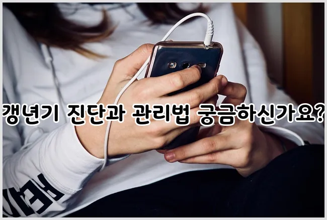 전문가와 상담하여 호르몬 치료 또는 필요 시 심리 상담을 고려하는 것이 좋습니다.이러한 방법들은 갱년기를 보다 원활하게 관리하는 데 도움이 됩니다.