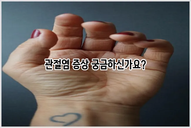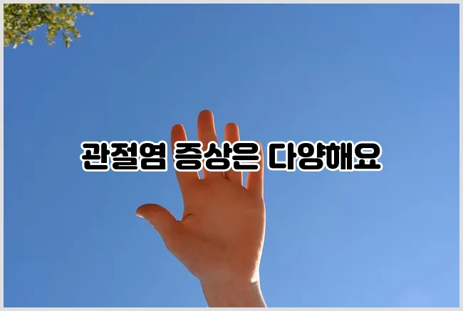 손가락관절염의 증상은 다음과 같습니다. 이 증상들은 처음에는 경미하게 나타나기 때문에 무시하기 쉽습니다. 하지만 시간이 지남에 따라 악화될 수 있으므로 주의가 필요합니다.