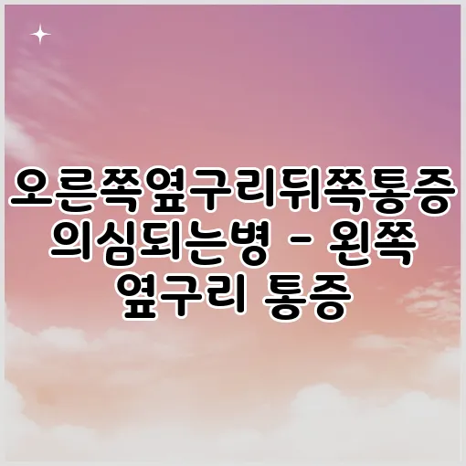 오른쪽 옆구리 뒤쪽 통증이 느껴지면 많은 사람들이 어떤 질병을 의심하게 됩니다. 특히, 왼쪽 옆구리 통증이나 오른쪽 옆구리 통증을 느낄 때는 더더욱 그렇습니다. 이러한 통증은 일반적으로 우리가 자주 겪을 수 있는 문제지만, 그 원인이 다양하여 쉽게 간과할 수 있습니다. 이 블로그 포스트에서는 옆구리 통증의 원인과 종류에 대해 자세히 살펴보며, 이를 통해 증상의 원인을 이해하고 적절한 대처 방법을 찾는 데 도움을 드리고자 합니다.